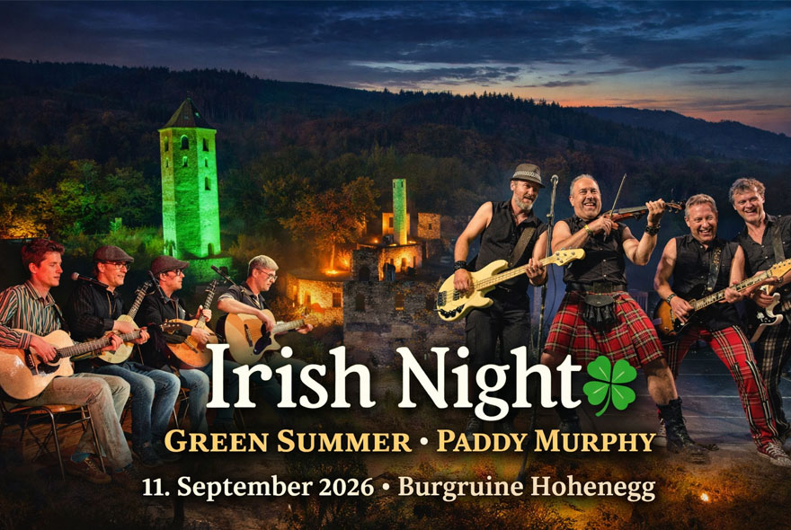 Ein Abend voller irischer Lebensfreude, wilder Musik, unvergleichlicher Energie und irischer Kulinarik erwartet euch auf der Burgruine Hohenegg.